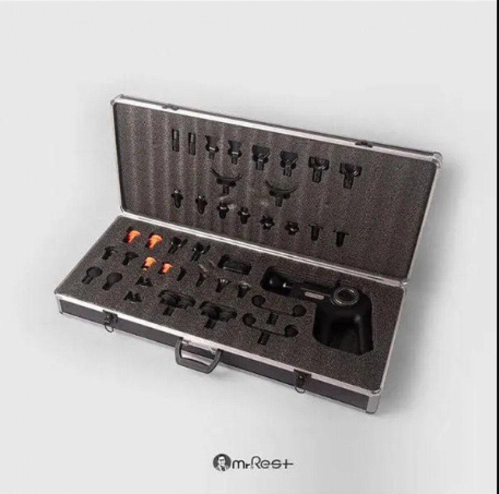 اگر در تصاویر دیده باشید این ماساژور دستی یک کیس قابل حمل بزرگ دارد که دستگاه، شارژر و 20 جفت سری مختلف یعنی 40 عدد سری را در خود جای میدهد.