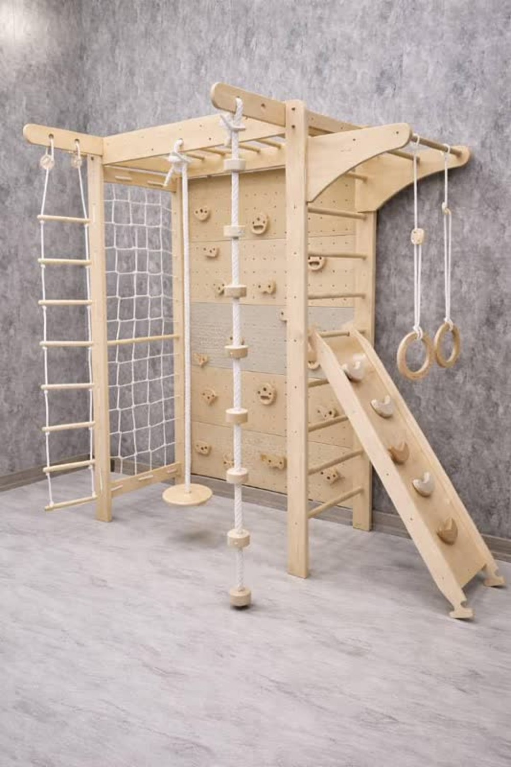 شامل صخره نوردی، نردبان معلق، طناب نوردی، تاب دیسکی، حلقه های ژیمناستیک، طناب، نردبان چوبی است.