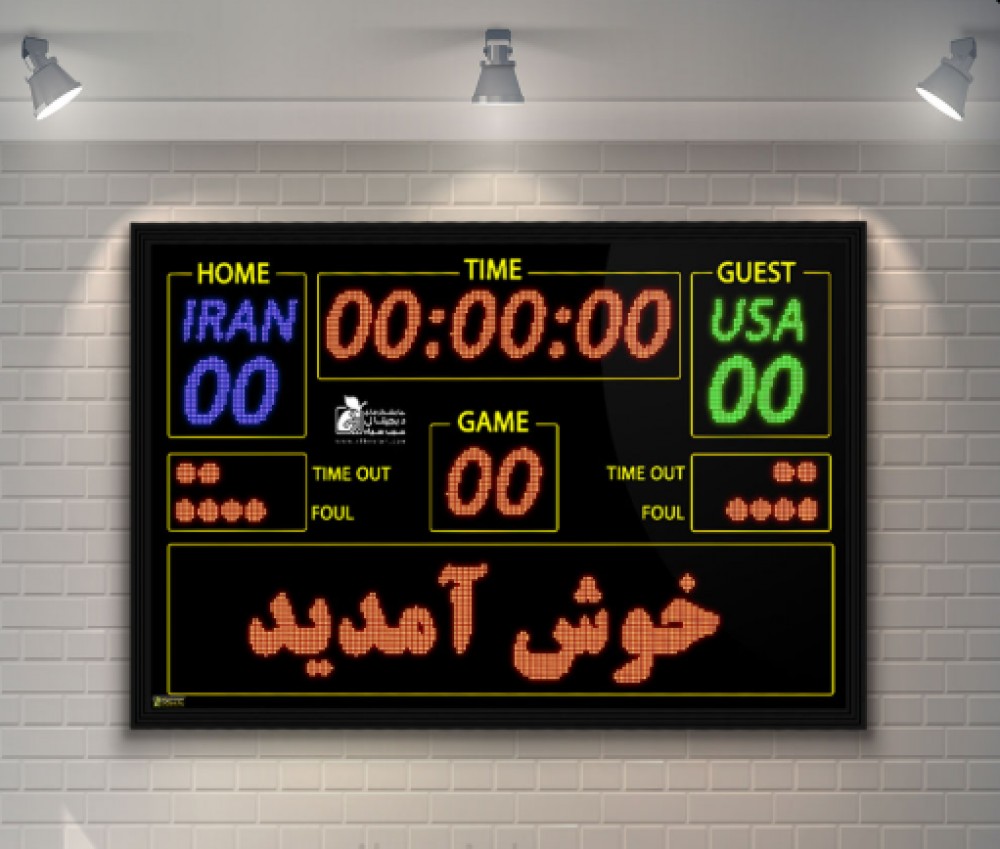 نمایش نتیجه بازی، نمایش ست شمار، نمایش تعداد زمان استراحت (Time out)، نمایش تعداد خطا (foul) نمایش پیام دلخواه زیر اسکوربورد و… اشاره نمود. کنترل این اسکوربورد به صورت بیسیم از طریق